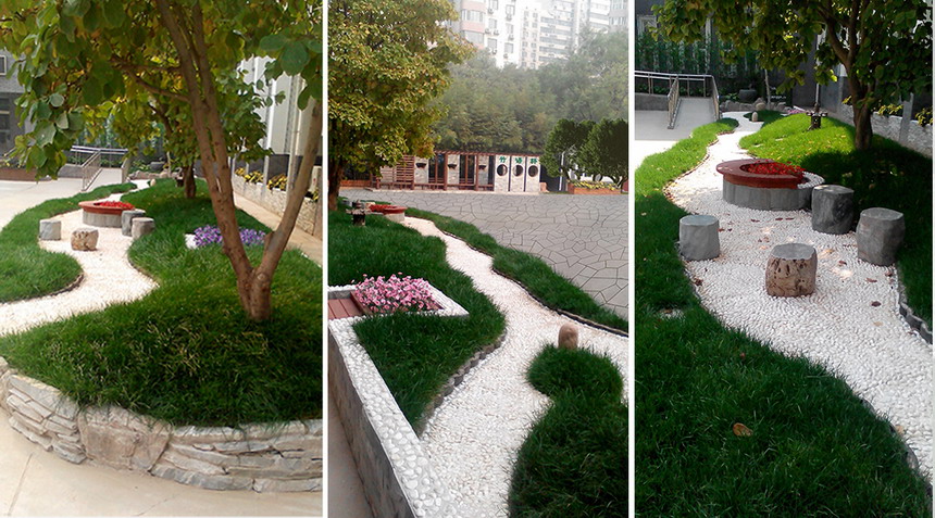 本案是日式庭院花园,,,,项目位于北京市丰台区,,,,略带日式特点,,,,更多体现自然亲热的一面,,,,毛石砌筑的挡土墙、白色卵石铺成的弯曲小路、略带升沉的草坪都给学生带来松开亲近自然的休闲感受。。。