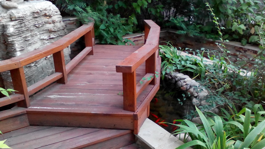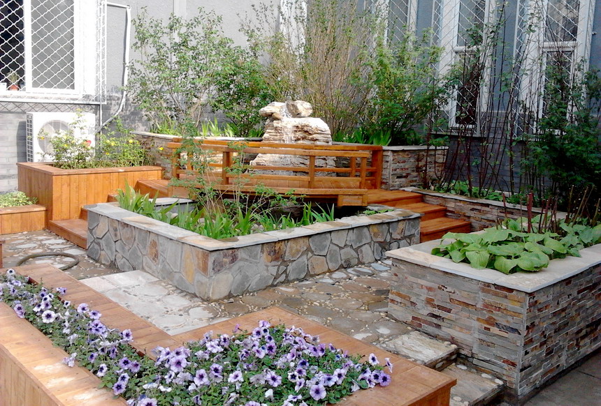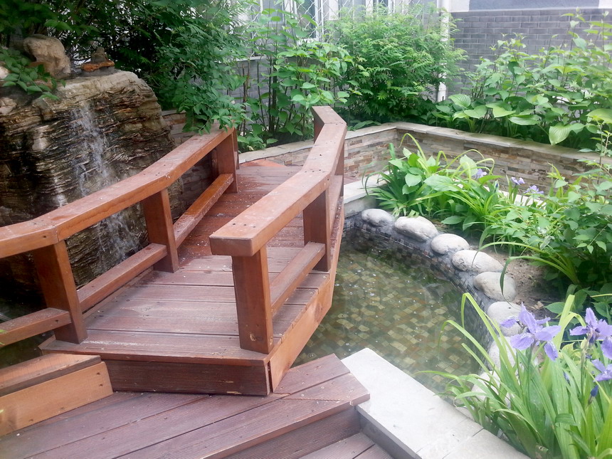 本案是广场角落花园,,,,项目位于北京市丰台区,,,,50平米的角落没有什么使用功效,,,,将其作为景观是很是合适的,,,,小桥流水、鱼儿游弋、空间条理富厚、移步换景、花繁叶茂让原本悄然的空间变得意见意义盎然,,,,焕爆发气。。。。